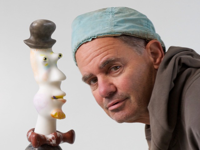 “Psyclone Stranger” highlights the passion of Neal Barab for combining different colors and types of marble within a single composition.